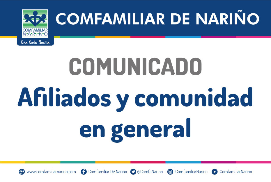Reiteramos el llamado a nuestros afiliados y ciudadanía en general, para que no se deje engañar con estas falsas ofertas de empleo, Comfamiliar de Nariño, nunca solicita datos confidenciales ni dinero para unos supuestos exámenes médicos.
