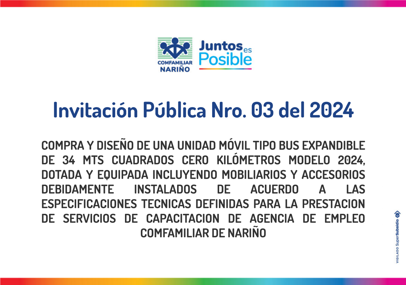 Comfamiliar Nariño invita a todas las empresas interesadas a participar en la convocatoria pública para la compra y diseño de una unidad móvil tipo bus expandible.